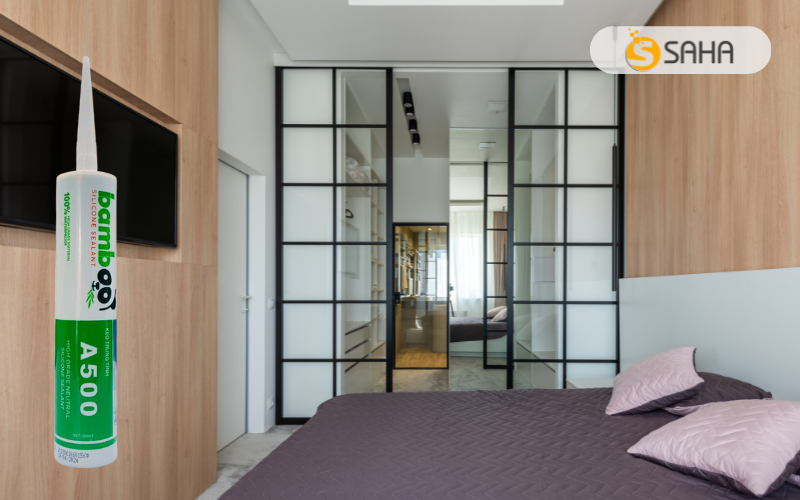 Phòng ngủ là không gian riêng tư cần sự yên tĩnh và thoải mái. Do đó, khi thi công vách ngăn nhôm kính, việc lựa chọn keo trám không mùi là yếu tố then chốt. Các loại keo silicone gốc acid thường có mùi chua khó chịu trong quá trình lưu hóa. Để khắc phục điều này, keo silicone trung tính như Bamboo A500 là lựa chọn lý tưởng. Ưu điểm của Bamboo A500 là không mùi trong quá trình thi công, đảm bảo không gian phòng ngủ luôn dễ chịu. Độ bám dính tốt, độ bền cao, đảm bảo tính thẩm mỹ và an toàn cho vách ngăn.